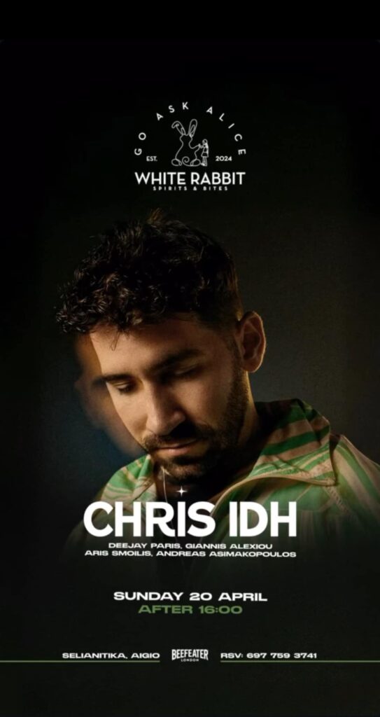 Κυριακή του Πάσχα μετά τις 16:00. Ο CHRIS IDH στα decks του White Rabbit και μαζί του οι DeeJay Paris, Giannis Alexiou, Aris Smoilis, Andreas Asimanopoulos.