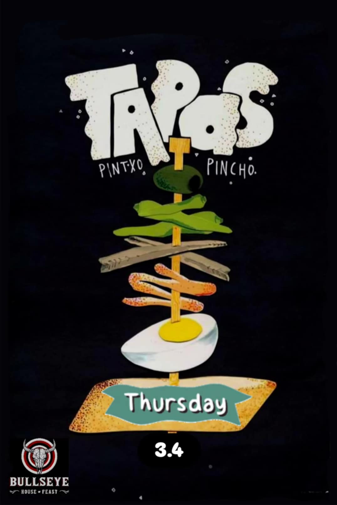 Ορεκτικά της Ισπανικής κουζίνας θα έχετε την ευκαιρία να γευτείτε όσοι επιλέξετε το Saloon Bullseye για την βραδινή σας έξοδο. Tapas, Pintxo και Pincho θα περιλαμβάνει η βραδιά.